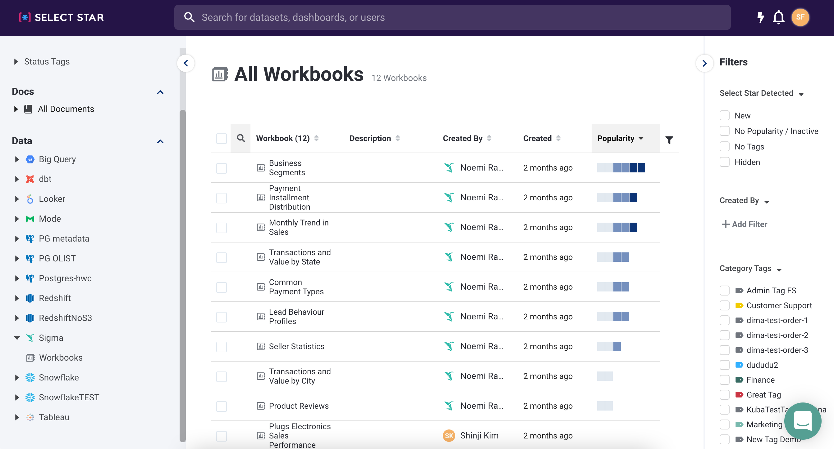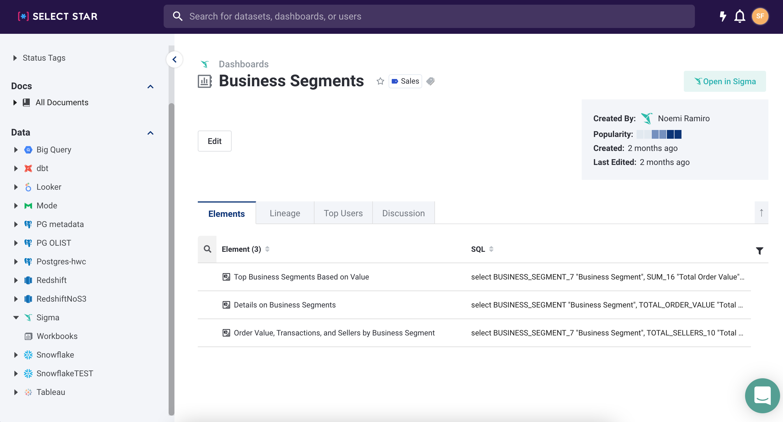 Did you know that you can look up any DWH or BI user in Select Star? We just improved our User Profile page so you can see all the information in one place.
