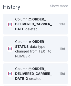 Now users can see schema change events, such as table created, columns created or deleted, and column data type changes in your table history.