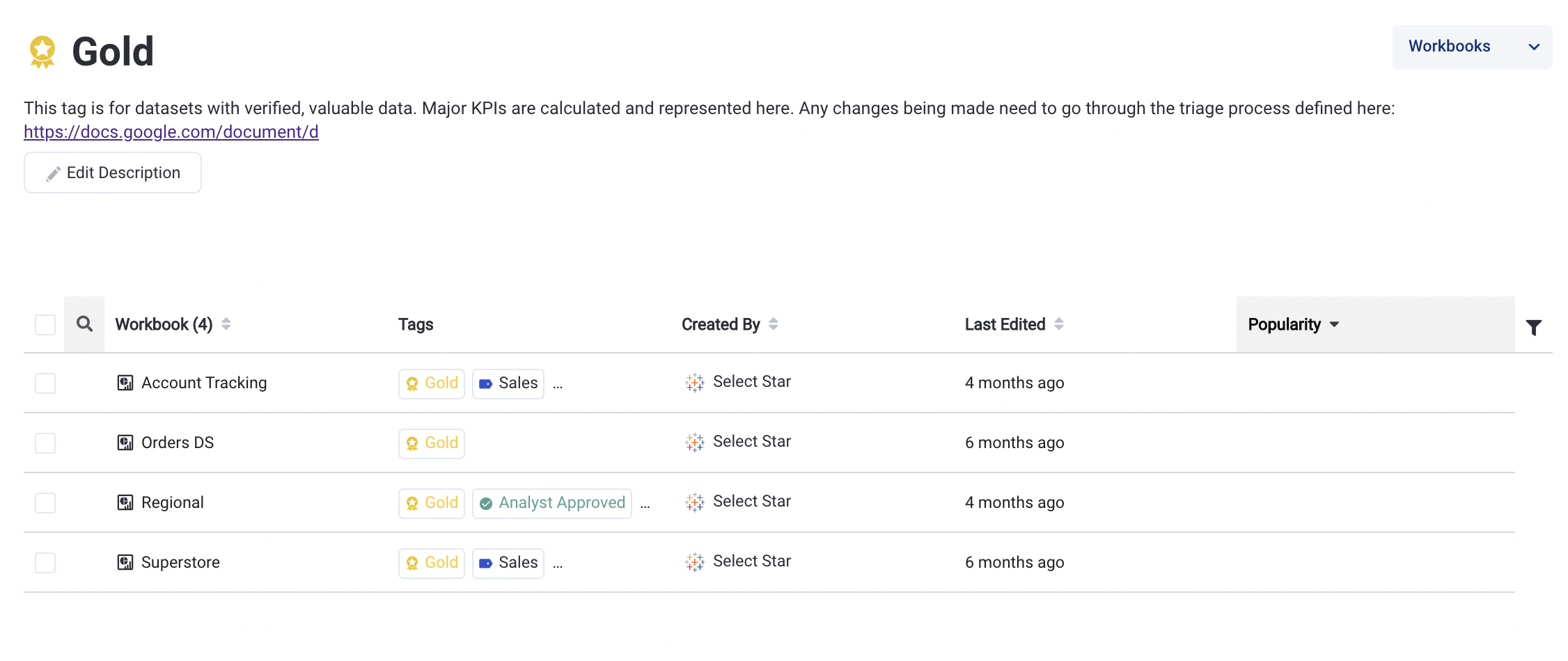 Use Collections to organize key assets within Select Star, and Tags to indicate data quality.