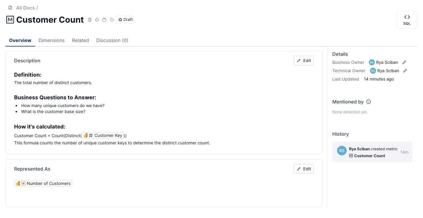 3. If Select Star detects a similar metric, it will be included in the generated metric's description