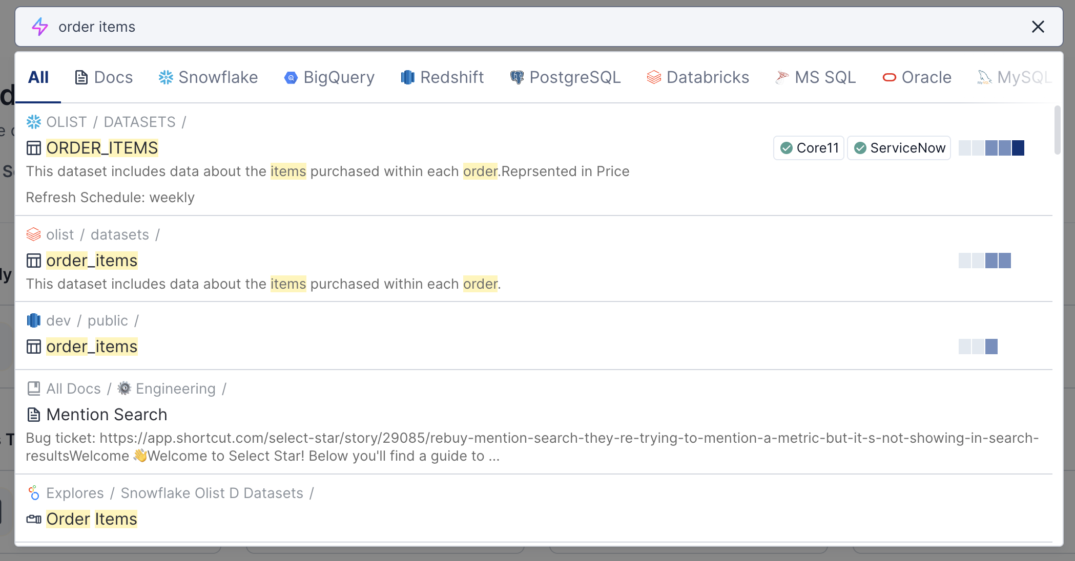 Watch this video to learn more about Select Star's universal search, or keep reading for more details: