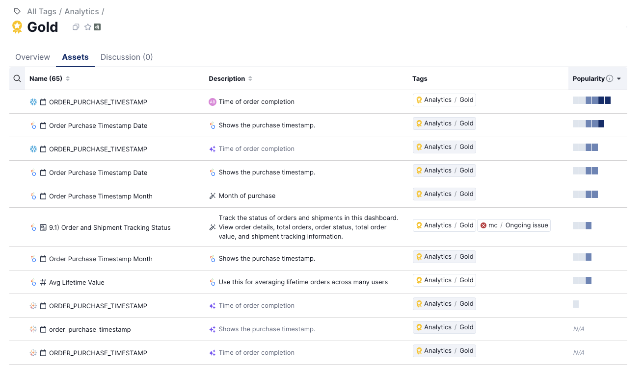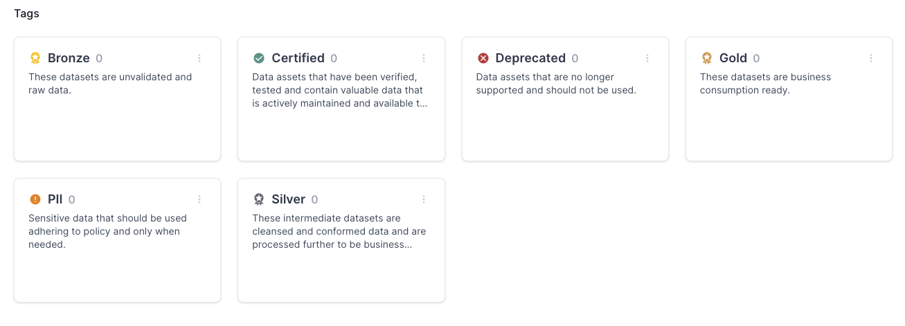 Tags can be used to indicate data quality, or any other trait relevant for your organization. Mark any datasets or fields as **Certified**, **Sensitive**, **Deprecated**, or any other status you'd use to define the state of the data.