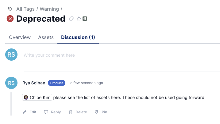 You can also ask questions in the discussion tab for each tag to ensure all related information close by.