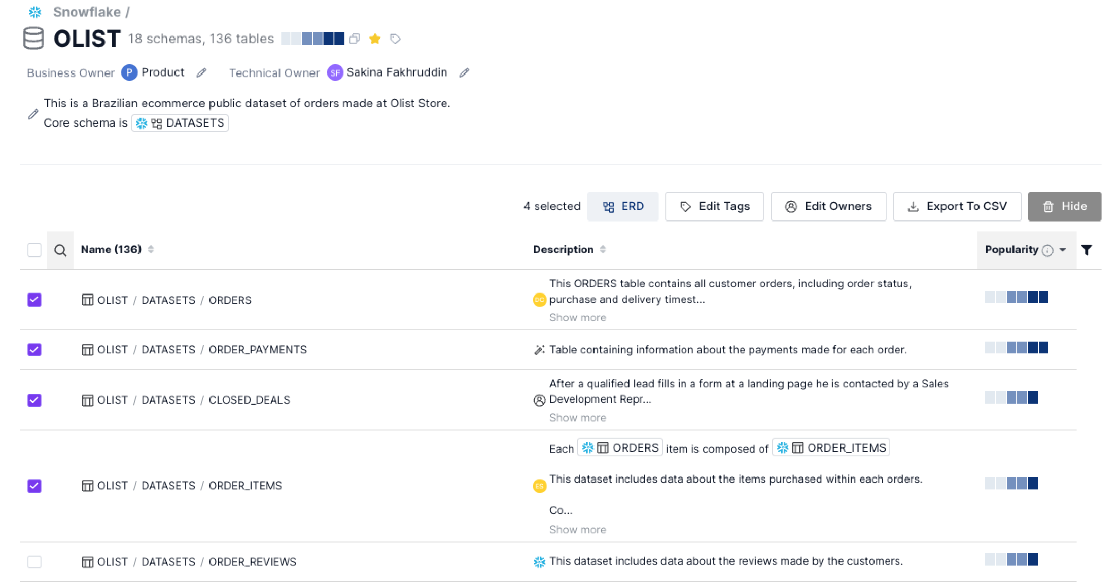 Use `Cmd/Ctrl+F` to open a filter where you can search for specific datasets to remove, or use the filters in the right sidebar to show items with the lowest popularity.