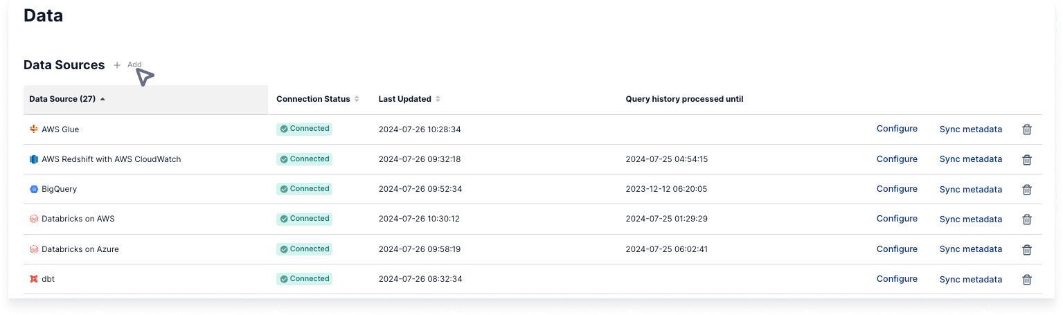 If you have a data warehouse, it is strongly recommended that you add the data warehouse connection **first**, before you add BI tools and other integrations.