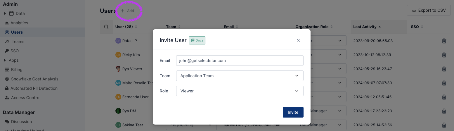 If you're looking to improve your Select Star organization, inviting users is a great way to collaborate with others and get more done. Here's how to invite users to your Select Star organization.