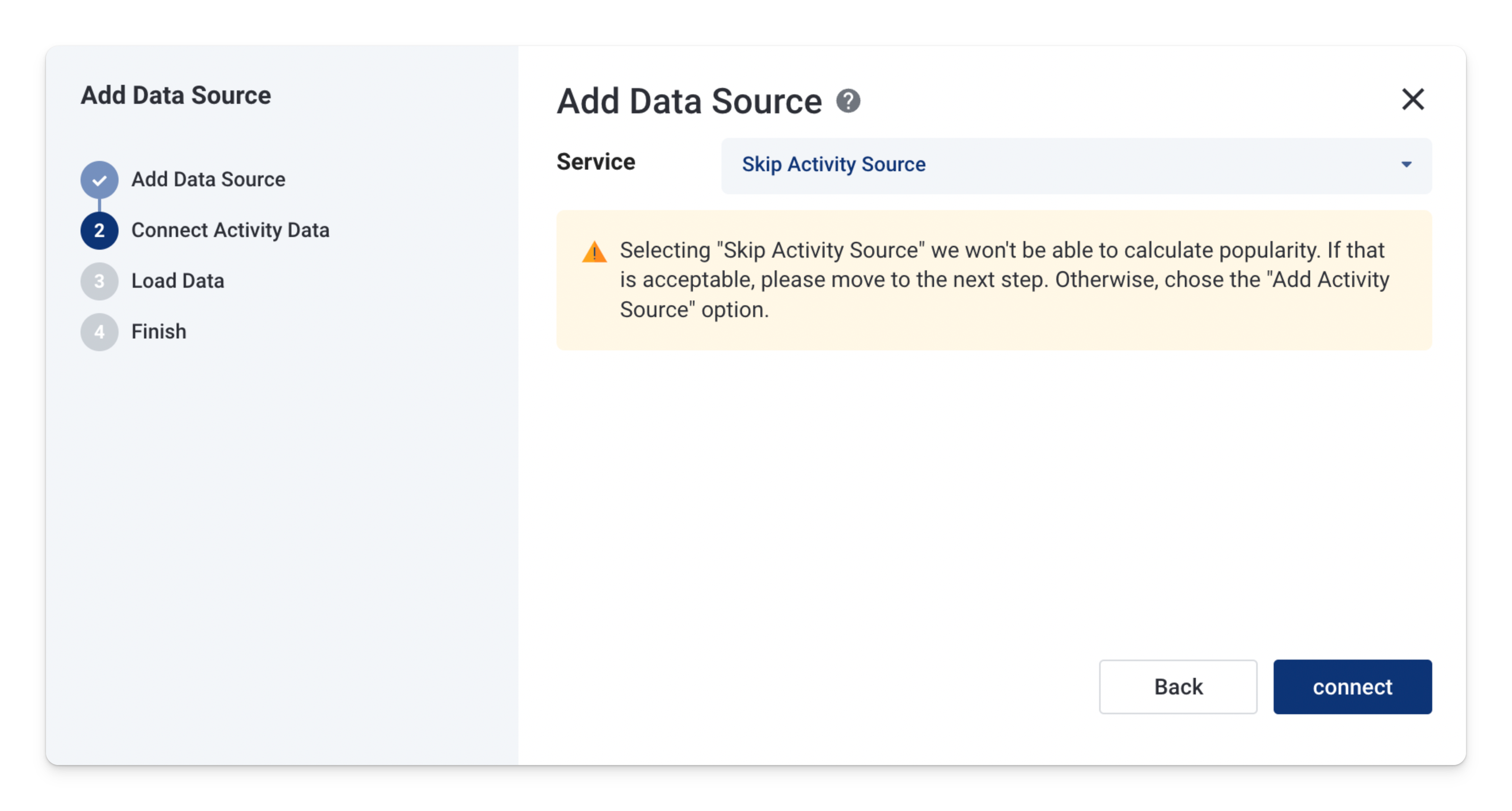 3\. Proceed to next step and select **Skip Activity Source** if you don't want to use popularity feature in Select Star.