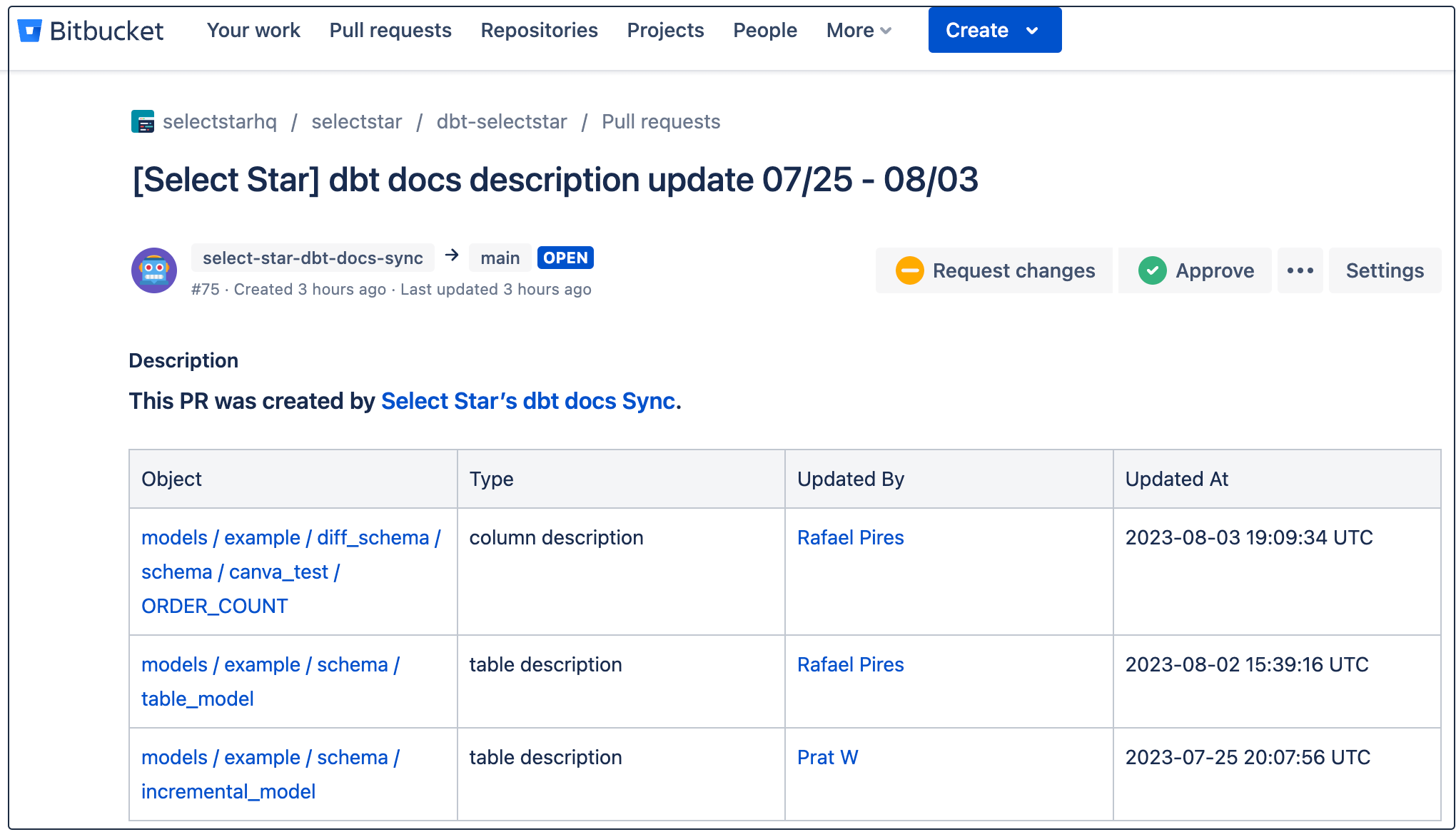 Once this is setup, you will see new PRs generated in your Bitbucket Repo.