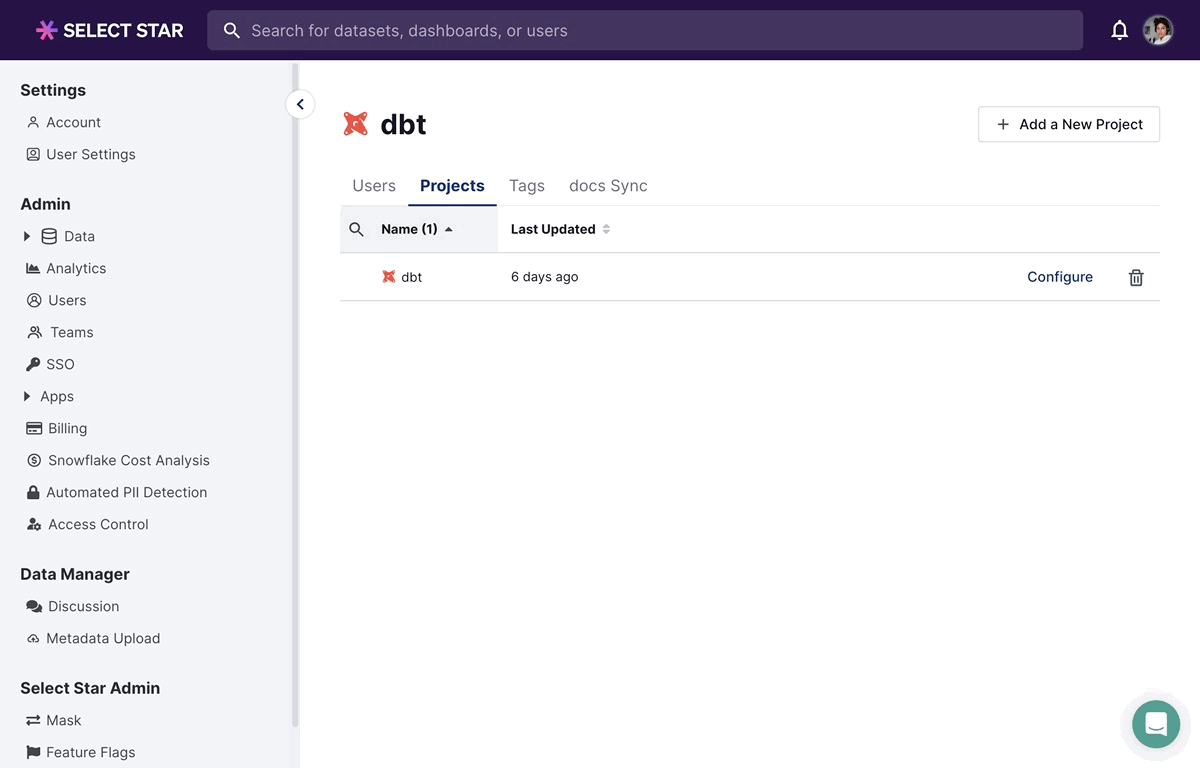 <figure><img src="https://3470314135-files.gitbook.io/~/files/v0/b/gitbook-x-prod.appspot.com/o/spaces%2F-MgAiVthA_yg9UXKuhyY%2Fuploads%2Fgit-blob-a483a827a54e12ab21bf3526424b0098e0f41319%2FScreen%20Recording%202024-07-08%20at%203.13.28%E2%80%AFPM.gif?alt=media" alt=""><figcaption><p>dbt projects settings</p></figcaption></figure>
