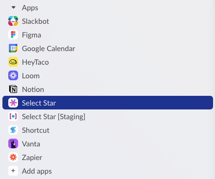 Head to Slack and find Select Star in the list of Apps.