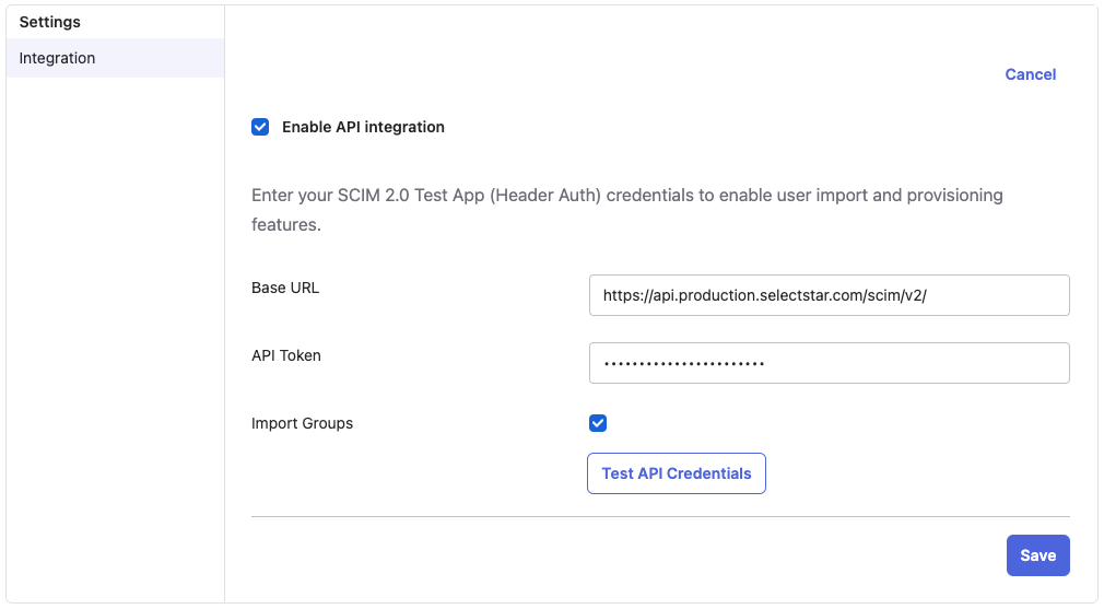 1. Note: after the SCIM app is set up, if a user is created in Select Star, the admin needs to re-import users from Select Star into the SCIM app