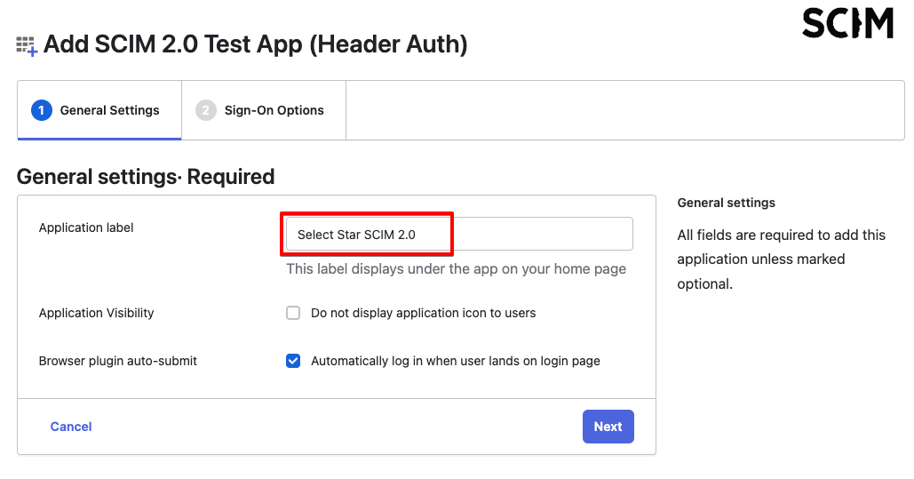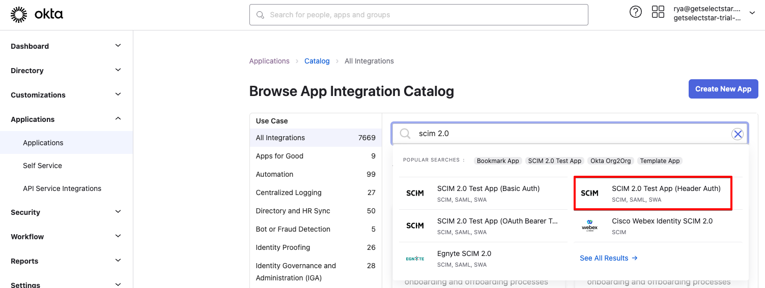 1. Add the SCIM 2.0 (Header Auth) App from the Okta Application Catalogue